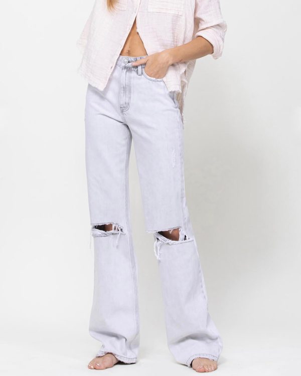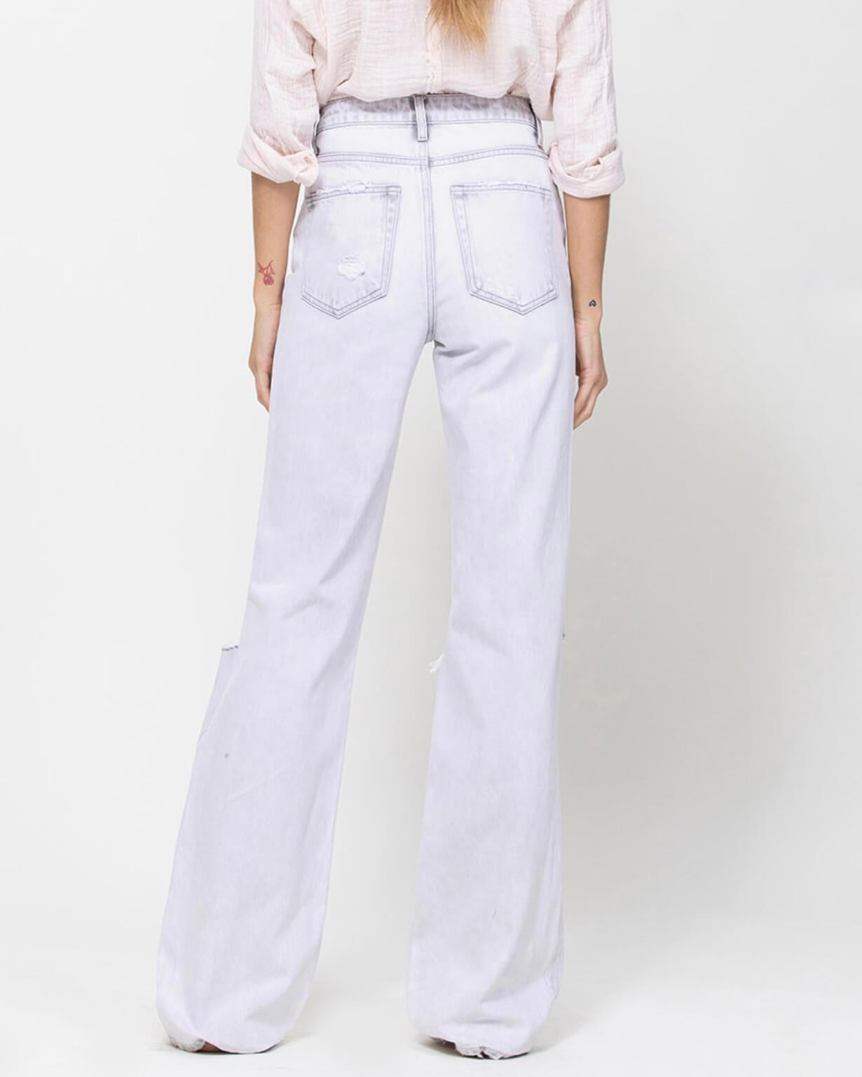 Complete your vintage outfit with a pair of these light wash flared jeans! These high waisted jeans feature a slim fit through the hip and thigh for a flattering fit. Features: 100% cotton