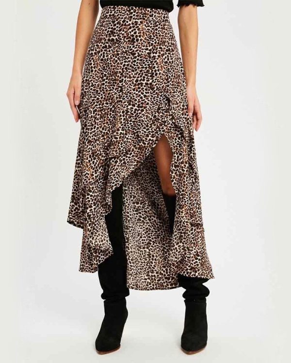 This one-of-a-kind animal print asymmetrical high low skirt is piece you don’t want to miss! Style this unique piece into your outfit and it’ll be the center of attention. Wear this with your favorite mock neck top and knee high boots for a stunning look!